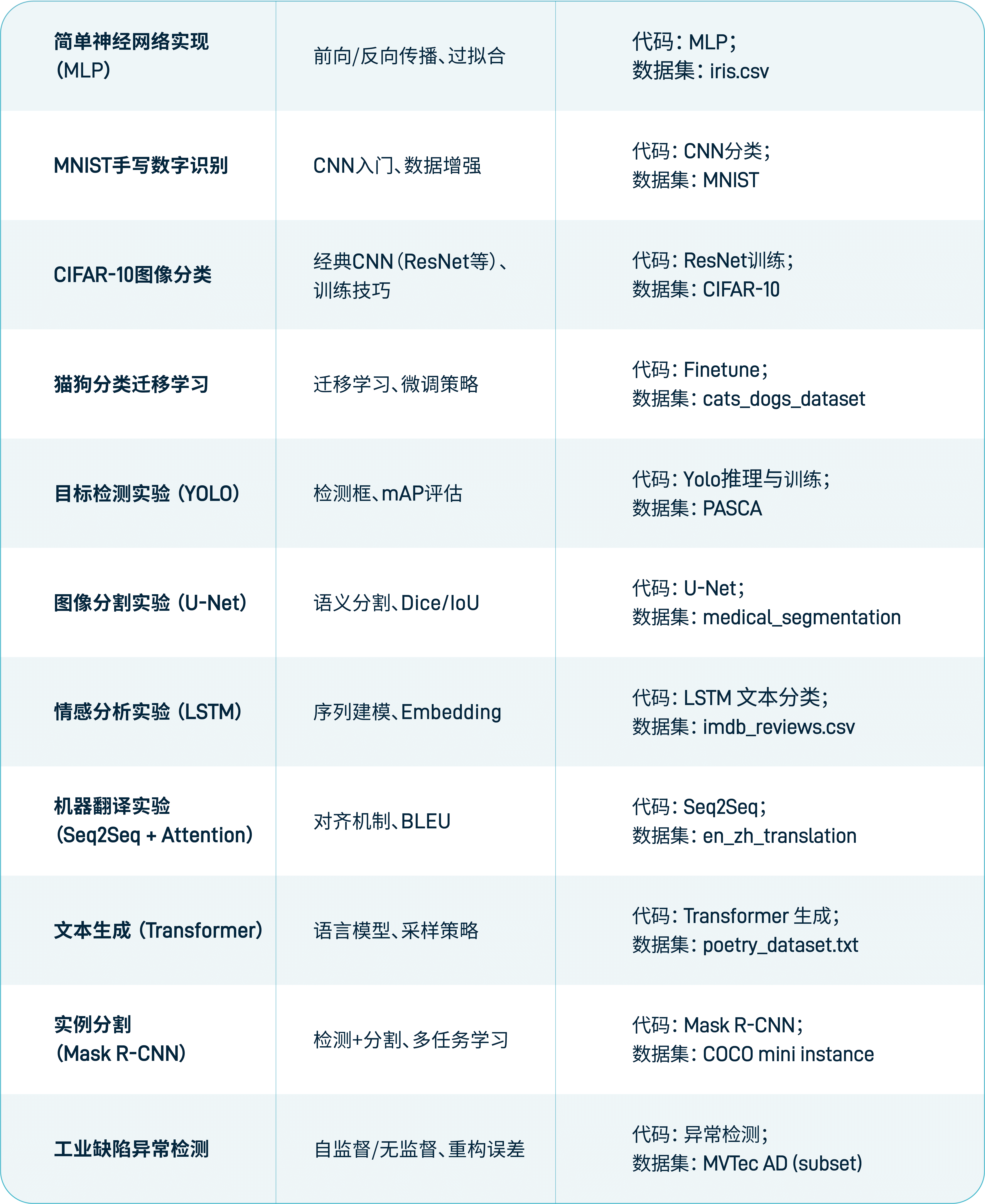 实训课程结合真实项目场景,提供丰富的实验案例、可供操作的数据集与实训指导,支持学生在模拟或真实环境中完成算法设计、模型训练与应用部署。通过理论与实训的深度融合,助力知识掌握到技能提升的有效转化。